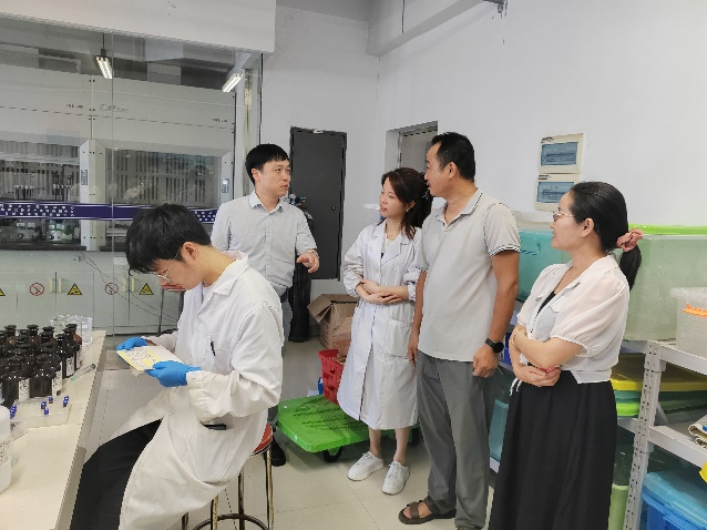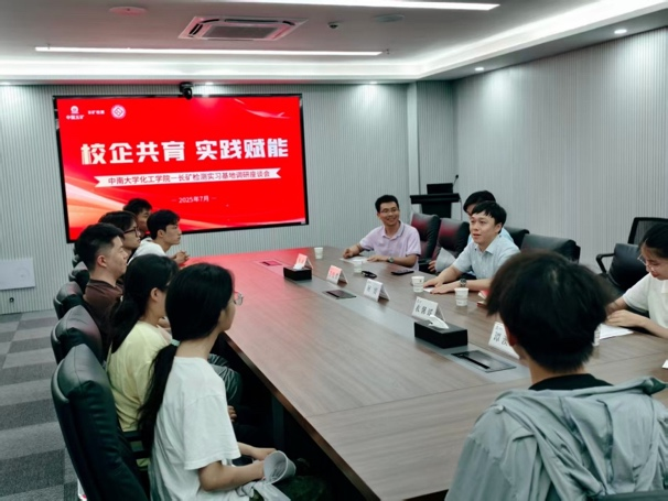 深入一线,察实情听心声。调研组先后走访了湖南省地质实验测试中心、长沙矿冶院检测技术有限责任公司2家长期合作的优质实践教育基地。每到一处,学院领导都深入企业研发中心或项目现场,实地察看学生实习环境和具体岗位工作情况。在湖南省地质实验测试中心的检测岗上,调研组看到本院强基计划应用化学T2201班的学生正熟练地参与产品检测、物质分析等核心工作;在长矿检测的分析部门,应用化学2204班的实习生们正全神贯注地投入各项测试工作中。