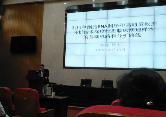 报告会上,林蔚教授系统讲述了其课题组在单细胞RNA测序和高通量数据分析技术方面的研究工作。郝锋教授主要介绍了待解决的活检样本分子检测相关问题以及单细胞技术在此的优势;实现单细胞RNA检测技术的基本原理及其典型的应用实例;高通量数据分析和机器学习方法在临床诊断中的应用。郝锋教授为我们介绍了单细胞的分子信号可解决的问题,同时为我们介绍了单细胞技术的前世今生及典型的单细胞RNAseq分析路线。指出了单细胞的核心问题在于正确合理地识别群,利用人工智能工具和大数据,把人类以往的细胞类型只是都可以在新的样本中尽可能地识别出来,最大程度地解决单细胞识别问题。