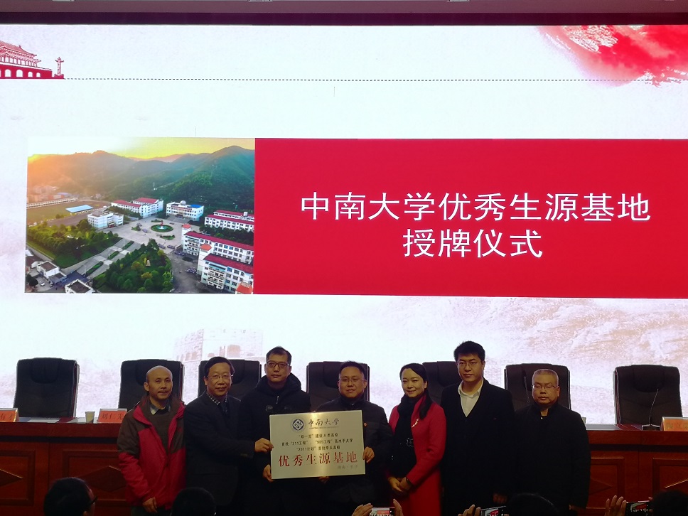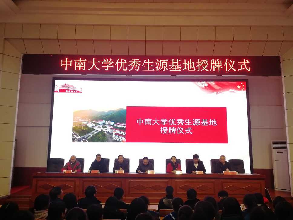 12月15日上午,开云kaiyun官方网站优秀生源基地授牌仪式在安化二中多媒体教室隆重举行。开云kaiyun官方网站本科生招生办公室主任赵晓霞、益阳招生组组长马跃如、开云kaiyun官方网站党委副书记刘有才一行七人,安化县教育和体育局党组副书记、副局长邹友良,安化二中班子成员、三个年级的300余名优秀学生参加活动,学校党总支书记陶立荣主持。