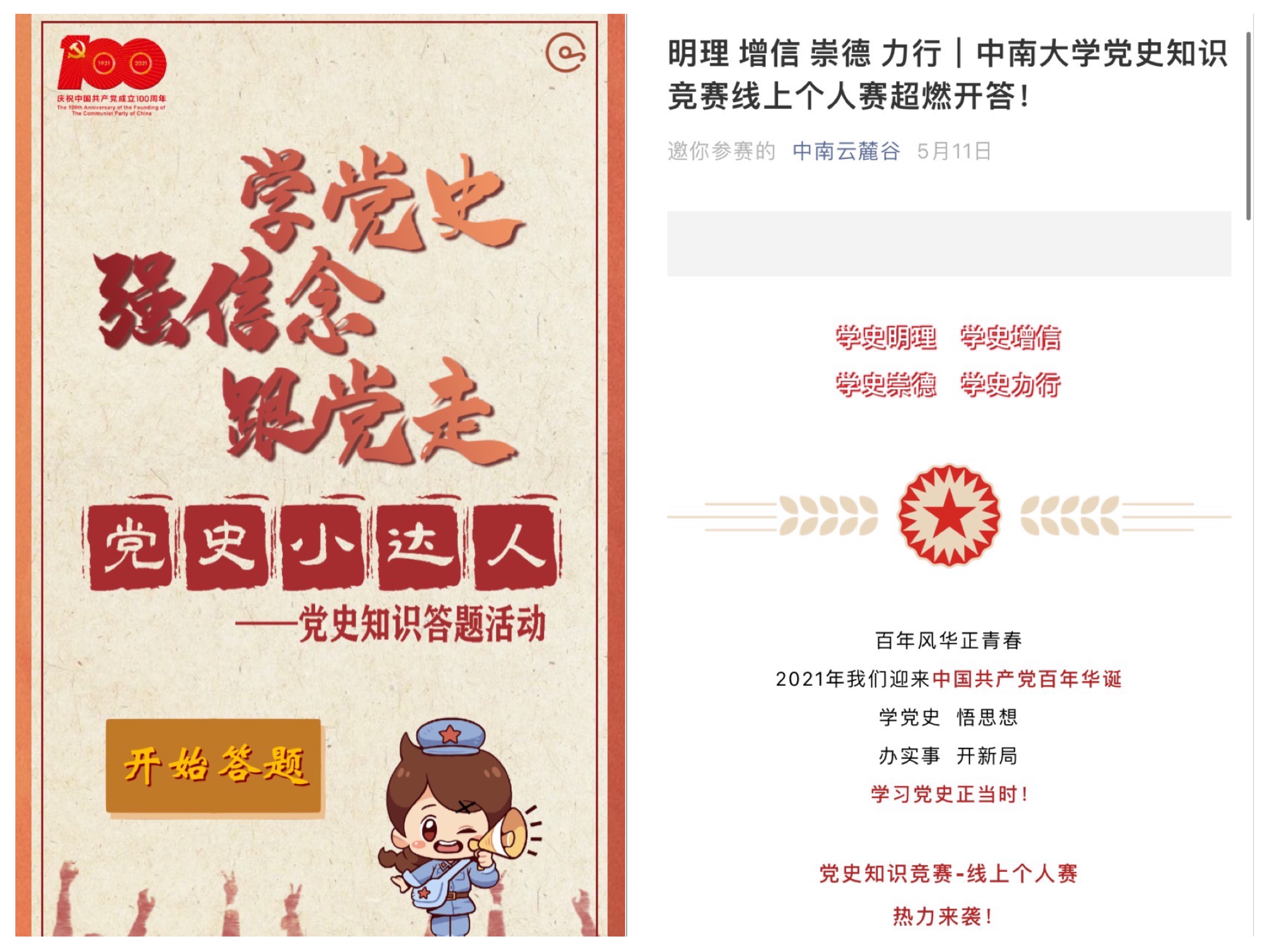 据悉,此次竞赛活动分为“线上答题”和“线下竞赛”两部分。自5月开展线上答题活动以来,开云与校团委积极沟通合作,充分利用“中南云麓谷”“中南小团子”微信公众号,连续不间断向同学们推送党史知识试题,在“中南化语轩”微信公众号开辟“党史回眸”专栏,通过生动形象的党史故事和同步播放极具感染力的音频,不断加深同学们对党史的学习和领悟,积极引导学生从党的百年伟大奋斗历程中汲取前进的智慧和力量。线上答题活动前后共吸引2万余名学生参与其中,全校各二级团组织积极参与其中,并取得广泛影响和良好成效。