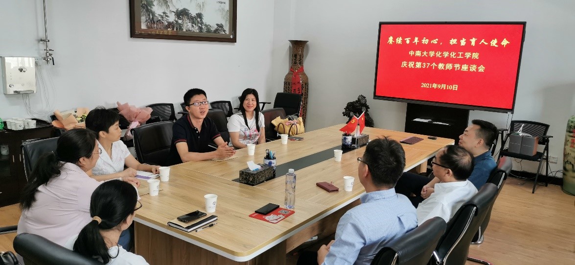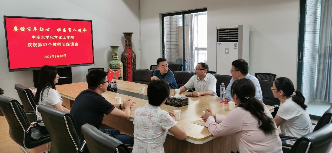 9月10日上午,学院在化学楼229会议室召开“赓续百年初心,担当育人使命”庆祝第37个教师节座谈会。院党委书记罗永忠、院长刘又年出席,5位优秀中青年教师代表参加座谈。宋相志副院长主持座谈会。