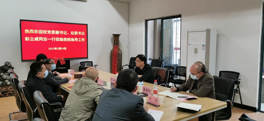 3月29日下午,学校党委副书记、纪委书记彭立威一行到开云kaiyun官方网站进行调研和指导。彭立威一行检查了学院疫情防控工作,听取了学院工作情况汇报。院党委书记罗永忠主持会议,在校的全体院领导班子成员参加会议。