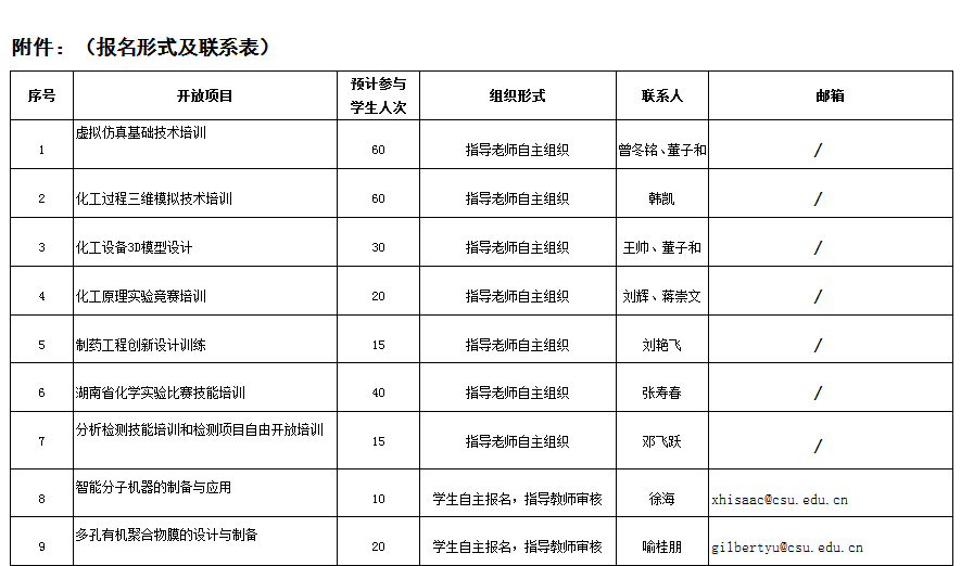 有意向参与的同学,请直接以邮件的方式与指导老师联系,具体联系方式及项目见附表。