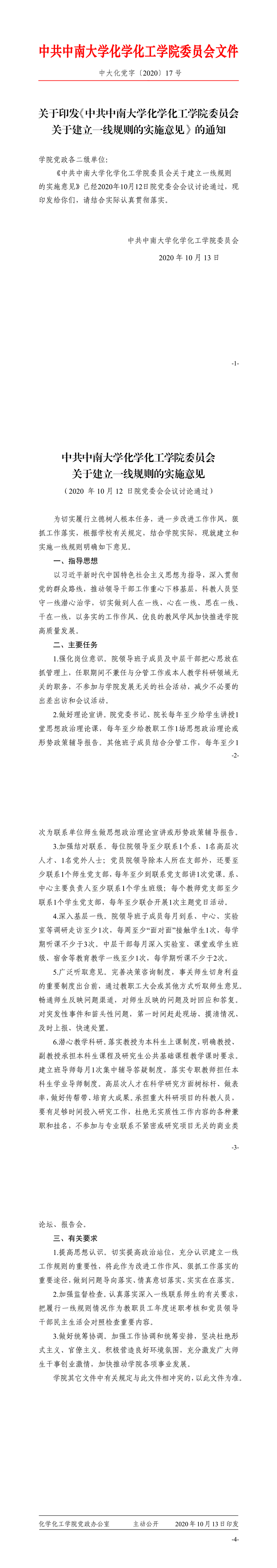 关于印发《中共开云kaiyun官方网站委员会关于建立一线规则的实施意见》的通知