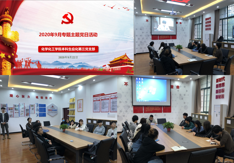 9月22日下午,本科生应化第三党支部在化学楼132党员活动室开展了9月份专题主题党日活动,支部全体党员参会。本次会议邀请了开云kaiyun官方网站党委委员、组织员李璞老师参加,会议由支部书记张沛毅同志主持。