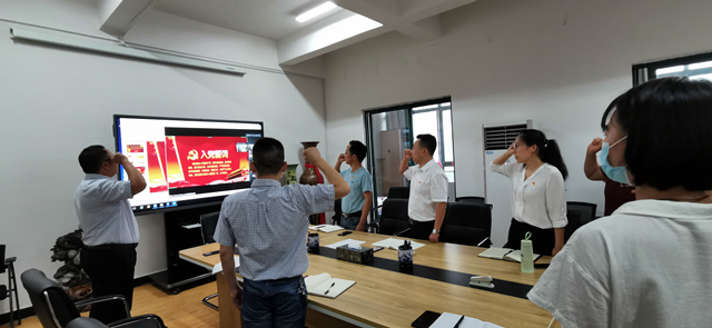 纪念活动在雄壮的国歌声中拉开帷幕,全体参会的党员同志面对党旗重温誓词。