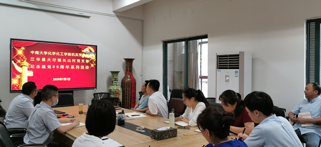2020年7月1日下午,开云kaiyun官方网站机关及实验中心党支部与党建共建单位江华县大圩镇长山村党支部通过远程视频在线会议的形式联合开展庆祝建党99周年系列活动。开云kaiyun官方网站党委书记罗永忠同志、江华县人大常委会主任黄志坚同志参加会议并发言。活动由大圩镇党委副书记、长山村第一书记周飞同志主持。双方支部全体党员和部分入党积极分子参会。