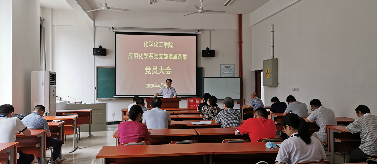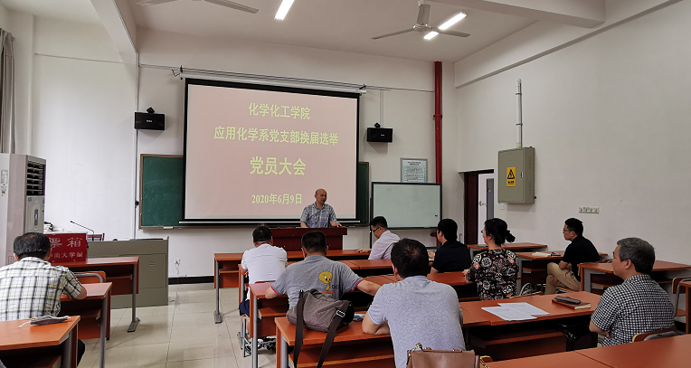 6月9日上午,应用化学系党支部在新校区化学楼129教室召开支部换届选举大会。大会根据《中国共产党章程》《中国共产党党支部工作条例(试行)》《中国共产党普通高等学校基层组织工作条例》、开云kaiyun官方网站党委《关于进一步规范党支部设置及换届工作的有关规定》等文件要求,严格规范地开展了选举工作。本次会议应到正式党员18名,实到会17名,超过应到会人数五分之四,符合选举条例人数要求。会议由上届党支部书记黄健涵同志主持。院党委副书记刘有才同志,党委委员、专职组织员李璞同志列席会议。