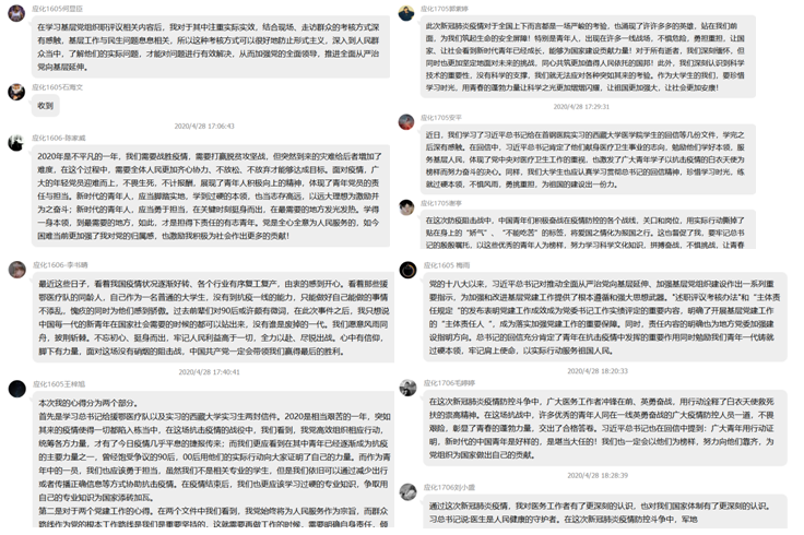 2020年4月28日下午17时,本科生应化第三党支部利用QQ平台线上开展4月份主题党日活动。活动主要内容为学习中共中央总书记、国家主席、中央军委主席习近平于4月16日在《求是》杂志上发表的重要文章《团结合作是国际社会战胜疫情最有力武器》,并就国家安全进行学习。会议由支部书记张沛毅主持,支部全体党员参加。