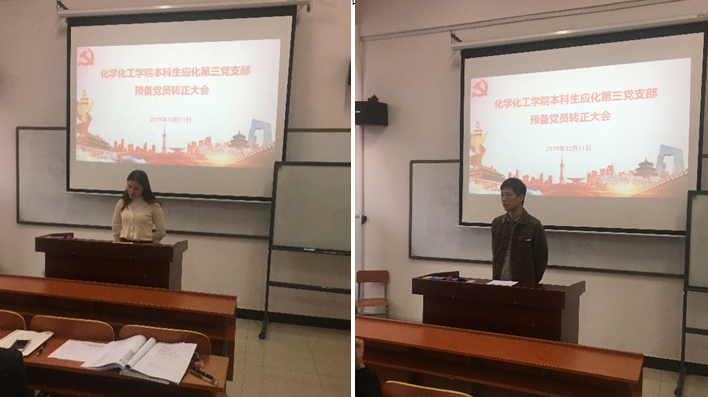 2019年12月11日下午3点,本科生应化第三党支部于开云kaiyun官方网站126教室召开预备党员转正大会,对石海文、孙帅威、古丽妮尕尔·依麻木和黄祉翔四名预备党员的转正申请进行了讨论和表决。本次会议应到18人,实到18人,其中有表决权的正式党员4人。会议由支部书记张沛毅主持。