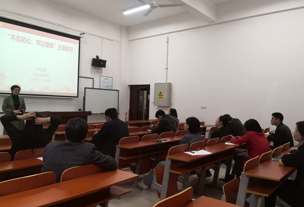 根据校院两级党委关于开展“不忘初心、牢记使命”主题教育的部署要求,分析科学党支部于11月6日在化学楼124开展了“改革发展抓落实”专题学习研讨主题党日活动,活动由支部书记蒋新宇同志主持。