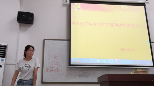 2019年9月10日,博士化工与分化党支部在化学楼126召开新学期党员大会。会议主要围绕重组换届选举;学习习近平新时代中国特色社会主义思想;党费收缴三个议题展开。