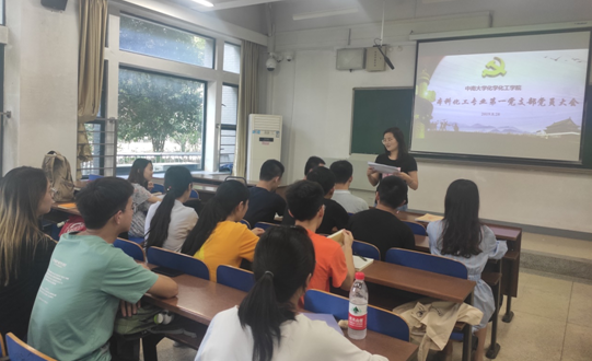 8月28日下午,本科化工第一党支部全体党员在新校区A117教室召开第一次支部党员大会,进行支部重组换届选举工作,会议由范帆同志主持。