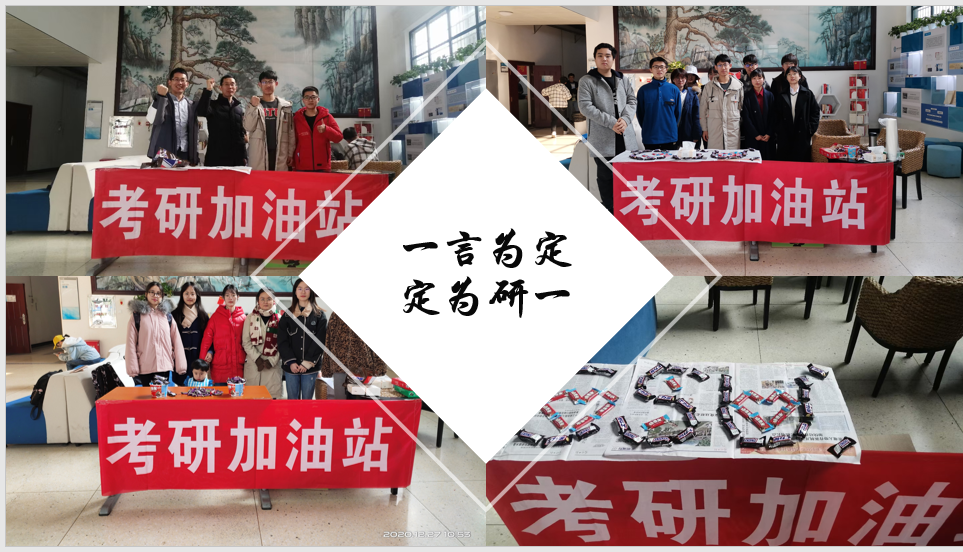 考研中,支部成员在化学楼设立考研加油站,做好考研学生中午休息的后勤保障工作,加油站共开设2个房间作为休息教室,减少考生的往返住宿区的奔波,为考生赢得更多的休息时间,同时加油站还提供士力架、巧克力等补充能量物品以及热水、常用应急药品等。党员同志牢记从群众中来、为群众服务要义,带领各班党员、积极分子做好组织群众、宣传群众、服务群众、凝聚群众的工作。期间院党委刘有才副书记、副院长阳华教授、化工系主任王帅教授到现场为考研学子加油助威。