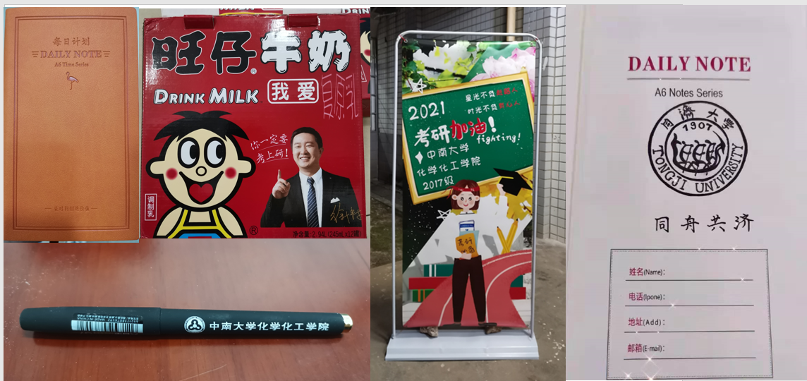 考研前两个月,为了给紧张复习中的考生们给予鼓励,本科生化工第二党支部为全体考研学子送上三份礼物:第一件是考研加油定制旺仔牛奶,徐涛定制版的考研加油旺仔牛奶为考生送上满满元气,第二件是一本写有考生目标学校的日程本,希望考生能够合理安排好考前的两个月时间,将时间价值发挥到最大,第三件是一支开云kaiyun官方网站的定制签名笔,希望考生们带着激扬喷薄的喜悦、带着温暖踏实的祝福,进行最后的冲刺。