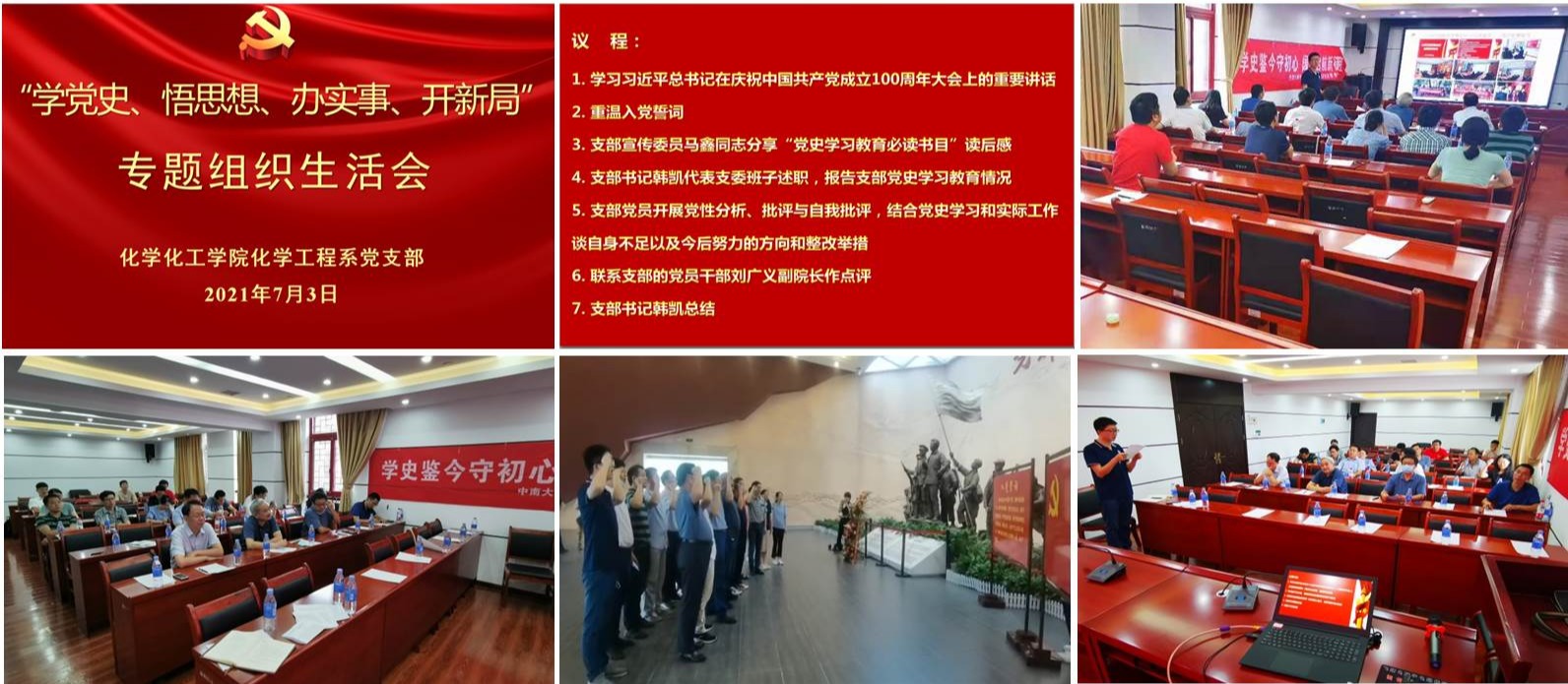 化学工程系党支部召开“学党史、悟思想、办实事、开新局” 专题组织生活会