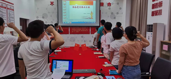随后,支部全体党员共同重温入党誓词,不忘初心,牢记共产党员的政治责任和历史使命,不断保持共产党员的先进性,以更加饱满的热情投身学习工作,切实发挥共产党员的先锋模范作用,永葆共产党员的政治本色。