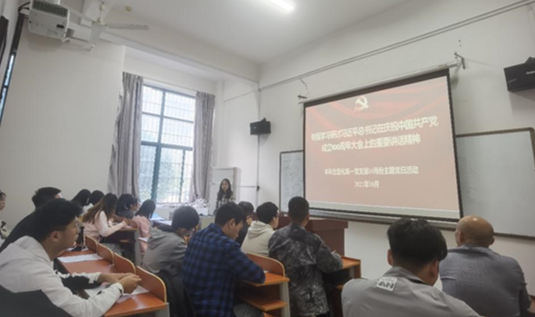 首先,由于悦凡同志宣布活动开始,支部成员学习研讨习近平总书记在庆祝中国共产党成立100周年大会上的重要讲话精神。学习之后,由赵宾宾、钟颖、赵锐瑶和谭天慧四位同志针对习近平总书记的“七一”讲话精神发表自己的学习体会,各同志结合自己的实际学习和生活,说出了自己的真实感受,并都表示我们应“以史为鉴、开创未来”,要让历史映照现实,从党的百年奋斗史中总结经验,厘清方向,从而在新的征程上更加坚定、更加自觉地牢记初心使命、开创美好未来。