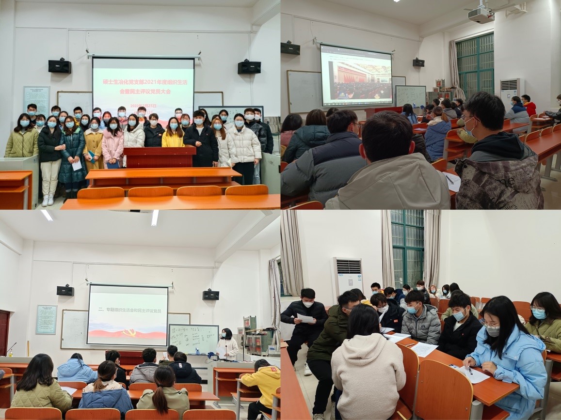2022年2月25日晚7:30,硕士生冶化党支部于新校区开云kaiyun官方网站123教室召开2021年度组织生活会暨民主评议党员大会。支部副书记项赢尔同志主持会议,支部全体党员参会。