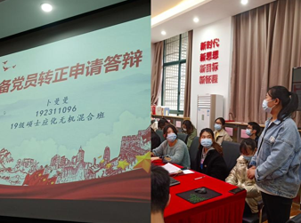 预备党员张馨心同志宣读了转正申请,汇报自己在预备期内的思想情况、对党的新的认识和以后努力的方向。随后,培养联系人周思宇同志从预备期这一年思想、学习、工作方面对张馨心同志进行了点评。接着与会党员充分讨论并给予建议。最后正式党员进行无记名投票。