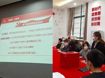 2022年4月16日14:30-15:30,硕士生应化与无机第一党支部在开云kaiyun官方网站132党员活动室召开党员大会,讨论卜曼曼、张馨心等两位同志的按期转正问题。会议由支部书记周思宇同志主持。
