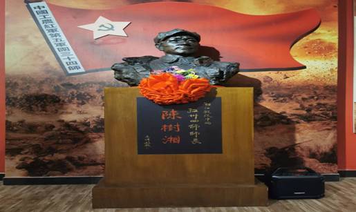 在讲解员的带领下,大家详细了解了陈树湘烈士的生平,聆听了陈树湘烈士“断肠明志”的英雄事迹,重温了红三十四师在长征途中的悲壮故事。陈树湘1905年出生于湖南长沙,在毛泽东、何叔衡等的影响下,投身革命,加入中国共产党。1934年10月,中央红军开始长征。陈树湘率领红34师担负全军后卫,同敌人追兵频繁作战,在掩护红军主力和中共中央、中央军委机关抢渡湘江战役中立下汗马功劳。1934年11月30日开始,陈树湘率全师6000名红军将士,同十几倍于己的敌军鏖战4天5夜,最后弹尽粮绝受伤被俘。在被敌人押往道县保安司令部的途中,他从伤口处掏出肠子绞断,壮烈牺牲,年仅29岁。