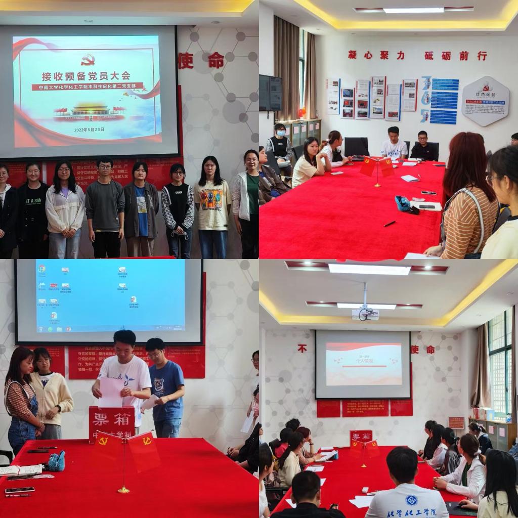 5月23日中午,本科生应化第二党支部在新校区化学楼132召开支部大会,讨论接收潘贵达等9名发展对象为预备党员的相关事宜,支部全体党员参会。大会有表决权的党员8名,应到会8名,实到会8名。会议由支部书记赵元超主持,联系支部的院党委委员、组织员李璞列席指导。