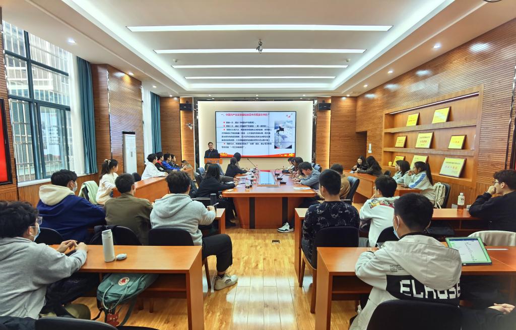 2022年11月25日下午3时,本科生化工第一党支部在化学楼129初心讲堂开展11月份主题党日活动。支部书记肖茜斤主持活动。联系支部的校党委党校常务副校长、组织部副部长赵永正讲授专题党课,联系支部的院党委委员、办公室主任朱敏同志到会指导,院党委委员、专职组织员李璞同志,专职组织员汪菁垚同志列席参加,支部全体党员、发展对象、入党积极分子代表参加活动。