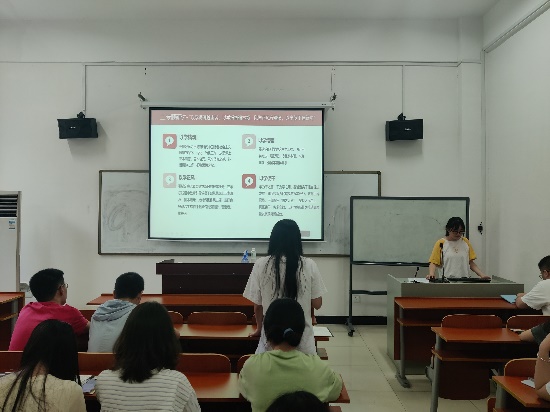 最后, 优秀毕业生代表张舒、方素素、何琦同志就升学、考公、求职分享经验。组织委员肖沁沁同志收取了六月份的党费。全体党员合影留念。