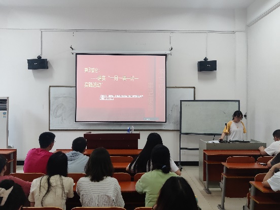 专题研讨结束后,开展“一月一课一片一实践”活动:党小组代表徐瑞同志讲党课并集体观看榜样7《陆生梅:扎根陕北绽芳华,为党工作无期限》。